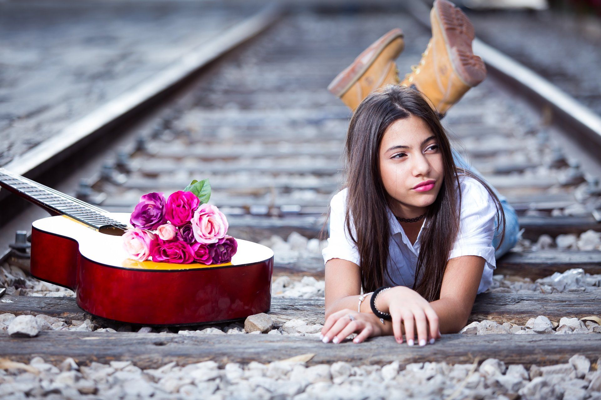 להתאים לנערות אשר מתחברות לנוף של רחוב,קירות גרפיטי,פסי רכבת,